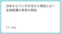 日本から完全にパンダが姿を消したのは極めて異例であり、今後の日中関係や動物外交の動きにも注目が集まっている。