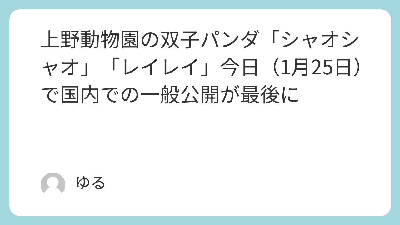 東京・上野動物園で飼育されているジャイアントパンダの双子、**「シャオシャオ」(オス)と「レイレイ」(メス)**が、本日(2026年1月25日)をもって国内での一般公開を終えました。