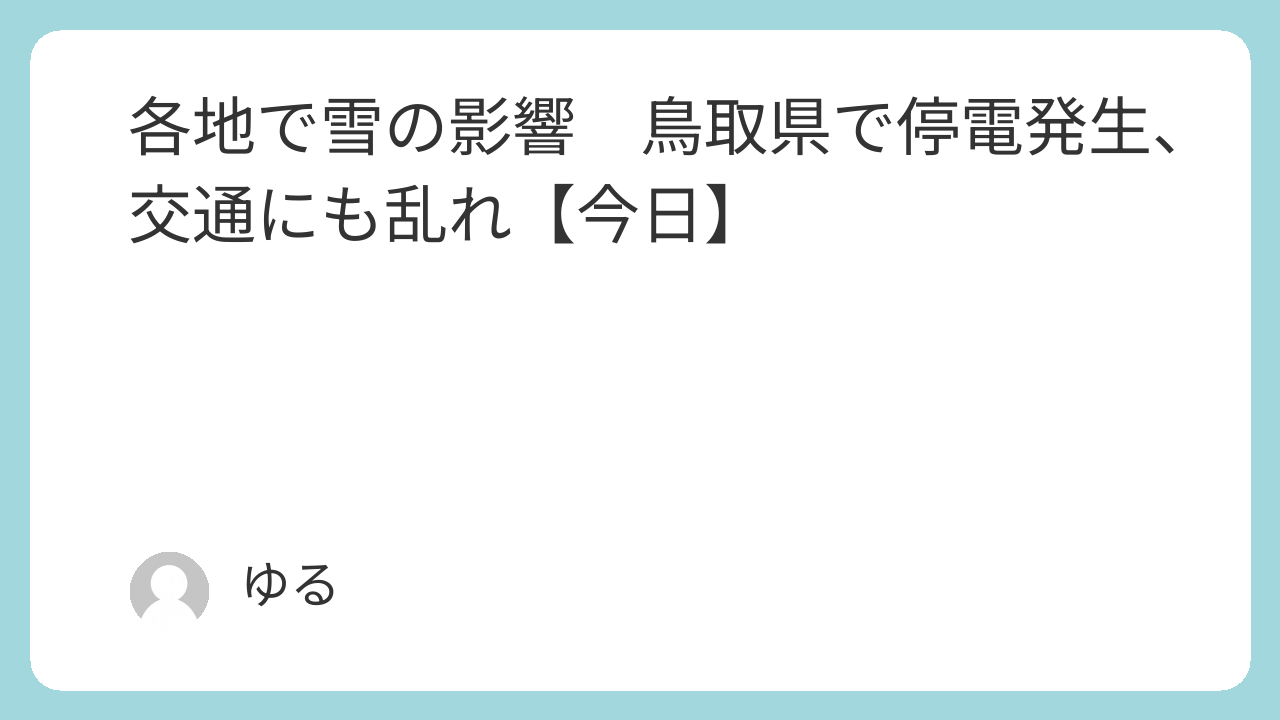 鳥取県では雪の影響により停電が発生し、住民生活に影響が出ている。