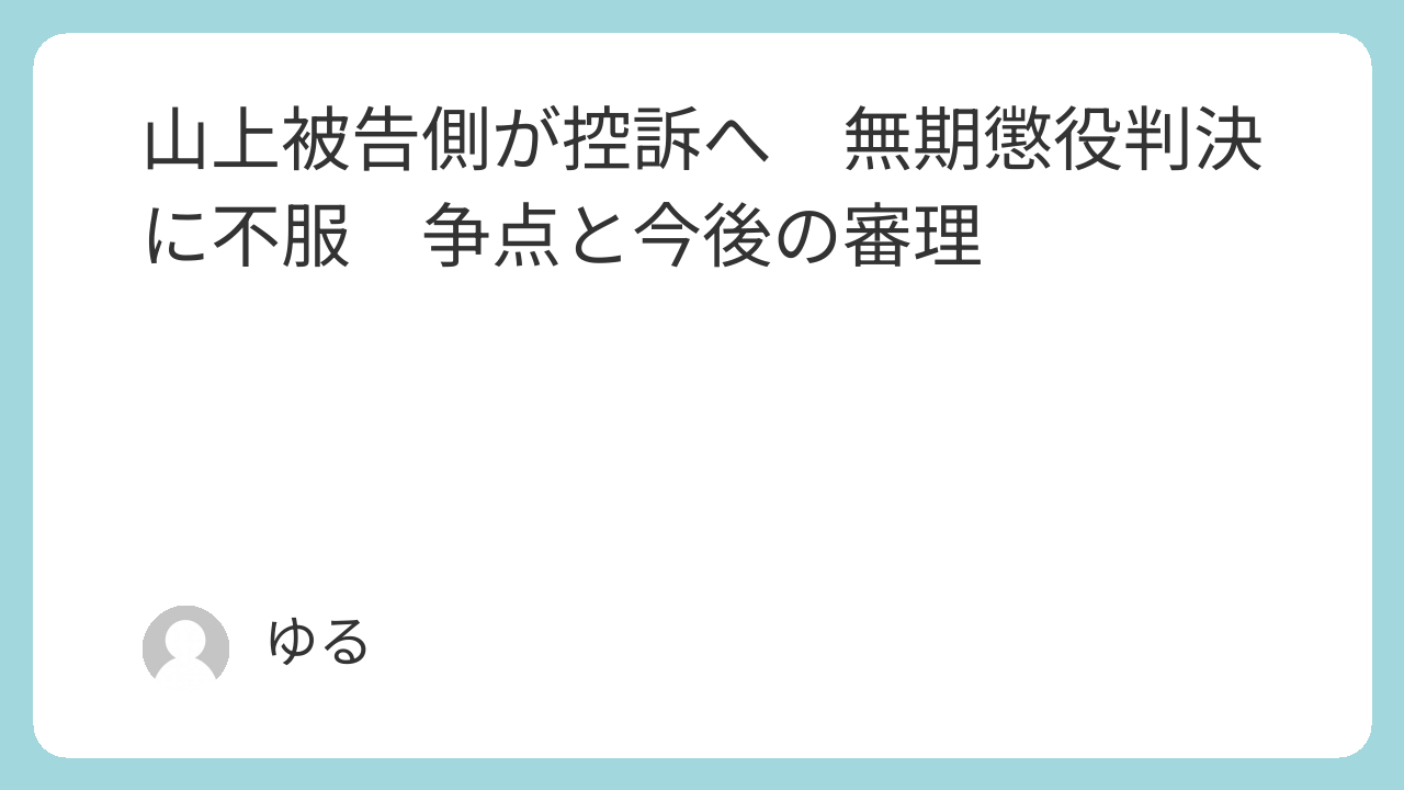 安倍晋三元首相銃撃・殺害事件で、奈良地方裁判所が山上徹也被告(45)に無期懲役判決を言い渡したことに対し、被告側が判決を不服として大阪高等裁判所へ控訴したことが関係者への取材で分かった。