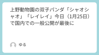 Uncategorized 上野動物園の双子パンダ「シャオシャオ」「レイレイ」今日(1月25日)で国内での一般公開が最後に 東京・上野動物園で飼育されているジャイアントパンダの双子、**「シャオシャオ」(オス)と「レイレイ」(メス)**が、本日(2026年1月25日)をもって国内での一般公開を終えました。中国へ返還するための準備が進んでおり、27日ごろに日本を出... 2026.01.25 Uncategorized生活